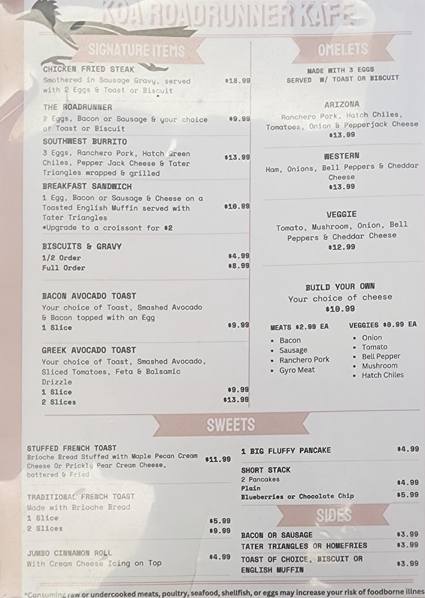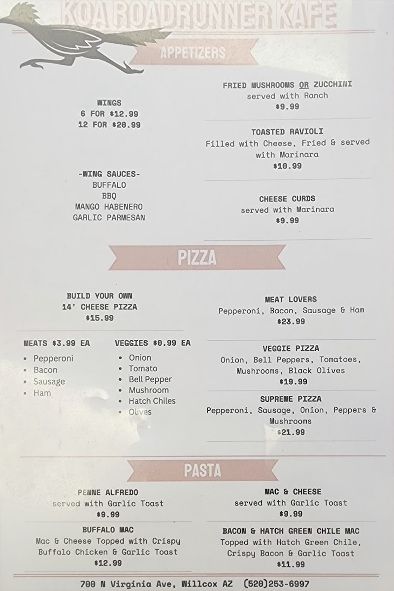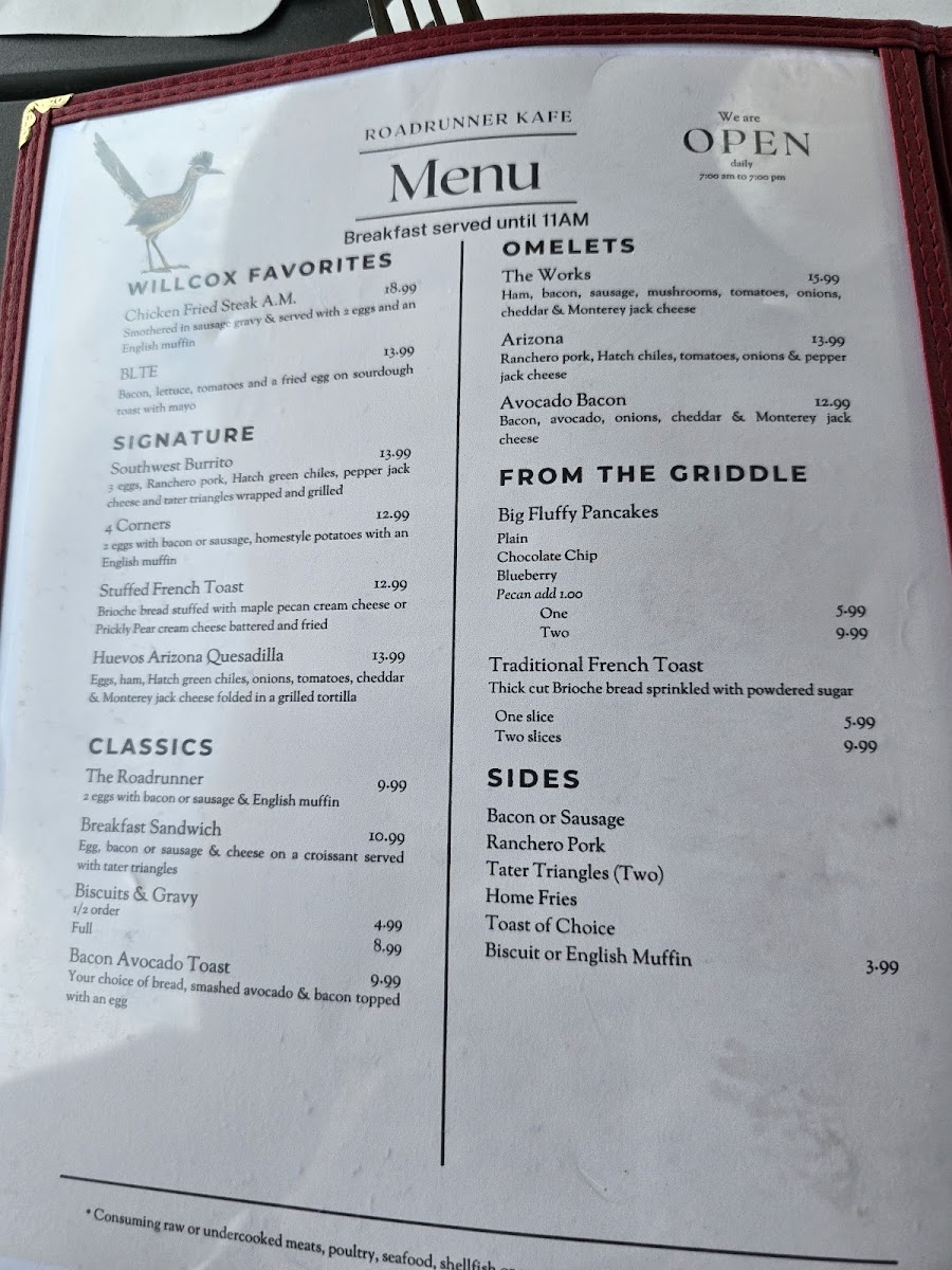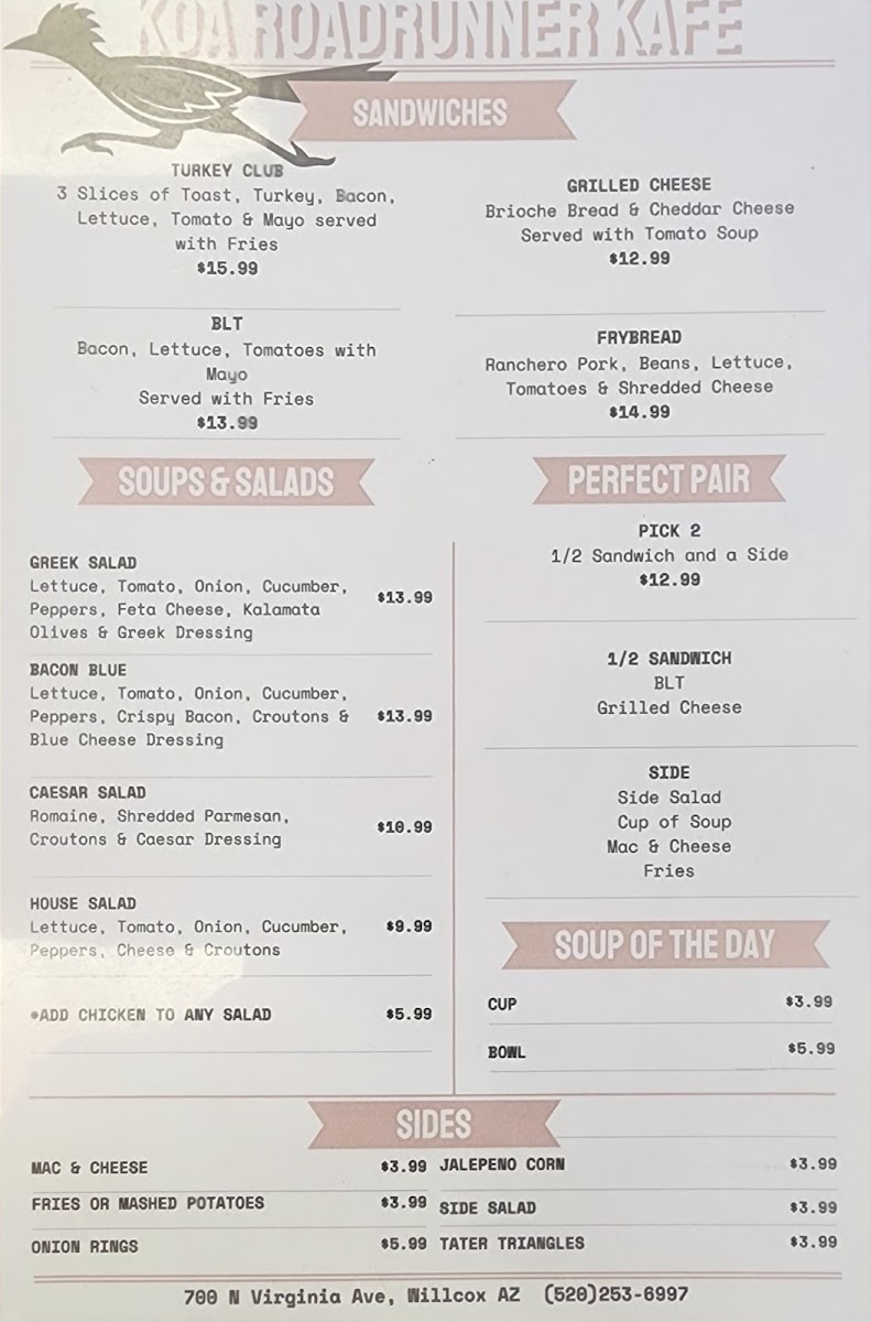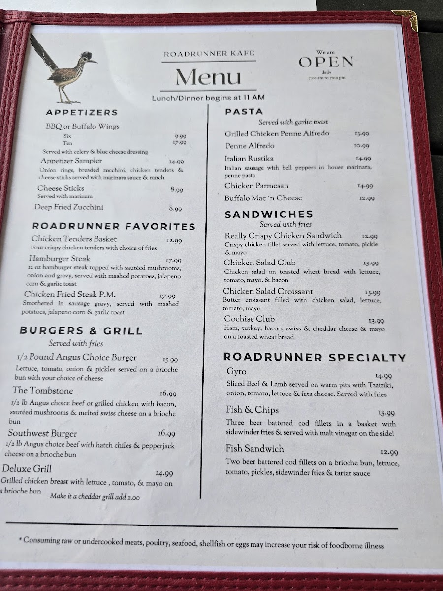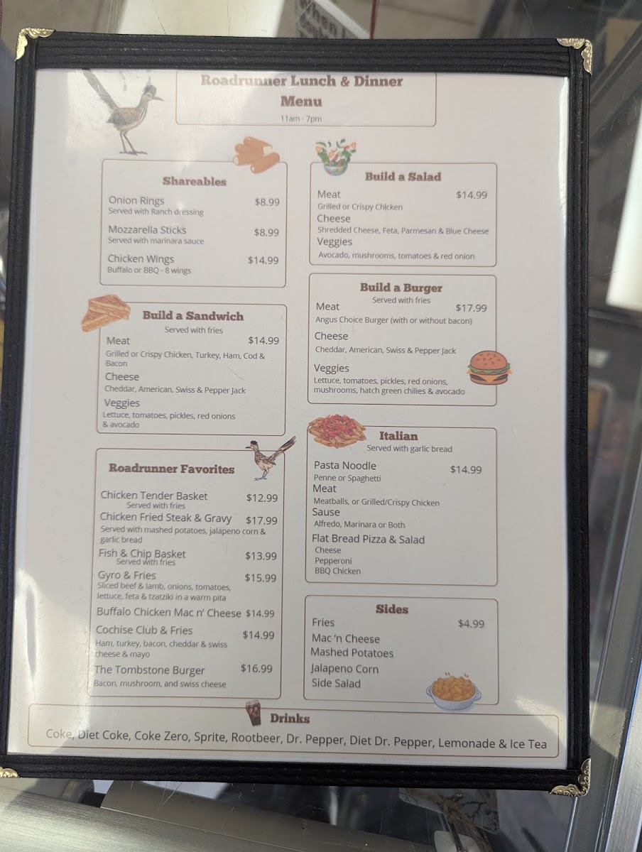Whether dining indoors or enjoying the outdoor seating, the food at Roadrunner Kafé complements the relaxed pace of small-town Arizona life. It’s the kind of place where quick, friendly service pairs naturally with familiar, well-prepared meals to make everyday dining feel easy and enjoyable.